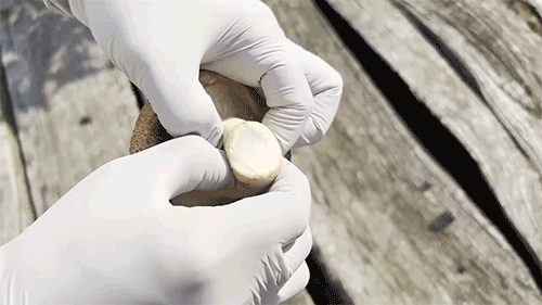 갓이 벌어지거나 눌림 혹은 찍힘이 있고
